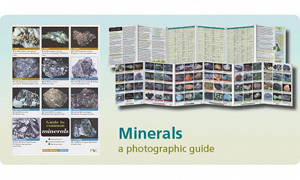 Designed for use in the field, classroom and laboratory, this 12-page chart features clear colour photographs of 71 common minerals. A comprehensive table gives an overview of the colour, hardness, lustre, mineral habit, cleavage and fracture properties of the minerals pictured. Information on the field occurrence, formation and economic uses of minerals is also included.